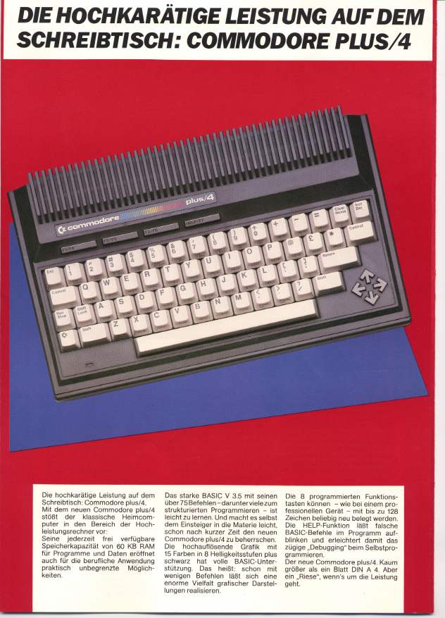 The 264 series had BASIC version 3.5 which is somewhat confusing, since it has more commands than the BASIC version of the old PETs (BASIC 4.0). BASIC 3.5 had all the disk commands of BASIC 4.0, but also support for graphic and sound. It is comparable to the BASIC 7.0 of the C128 but lacks the extensions for structured programming.