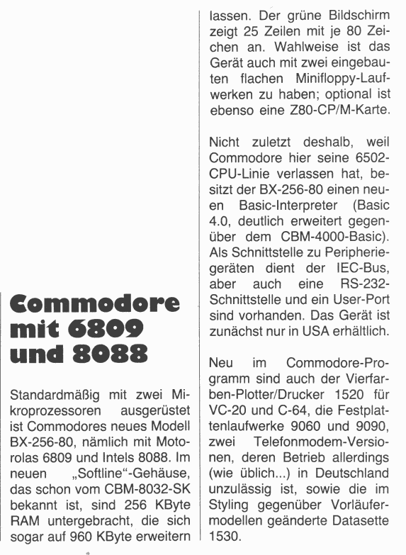 The Commodore 600/700 computers were designed as business computers. They had a fast CPU (2MHz), Extended BASIC 4.0, more than 64K memory, an 80 character display and an UART chip, allowing baud rates up to 19.2kbit/s.